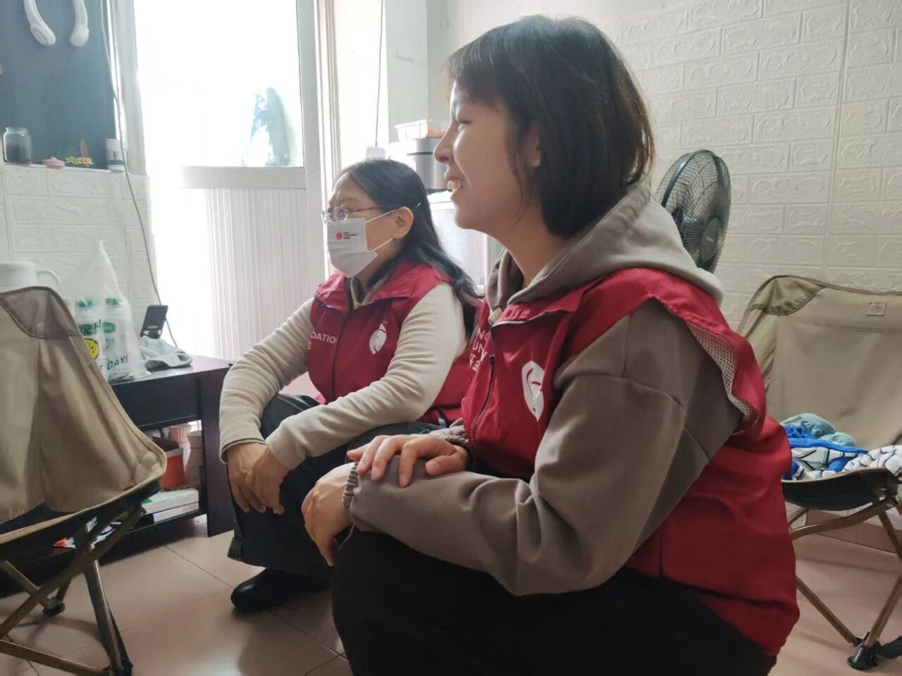 我和洁莹带着有点忐忑的心情来到可可(化名)就所住的小区,开门后,一个瘦小的身影闪现在我的视线中,但很快可可(化名)就爬上床躲进了被窝中。为了打开这个局面,姜老师就带头向他轻声细语的解释了我们的情况……看着孩子卷缩在被窝里小小的身子,我的内心充满了怜爱,多么希望他的病情能慢慢得以缓和,至少不要让他受太多的病痛折磨。时间过得很快,陪伴的形式也是各式各样,原来今天的少言少语,也是一种默契的相守,离开时可可(化名)跟我们一一挥手告别。——李建红、陈洁莹