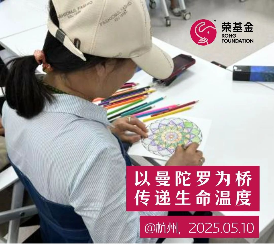 5月10日,荣基金杭州志愿者团队在浙江省肿瘤医院开展"心灵绘境·生命共语"主题关怀活动。通过曼陀罗涂色彩绘与心理呵护的形式,活动为患者及家属搭建起情感联结的桥梁,传递生命关怀的温度。