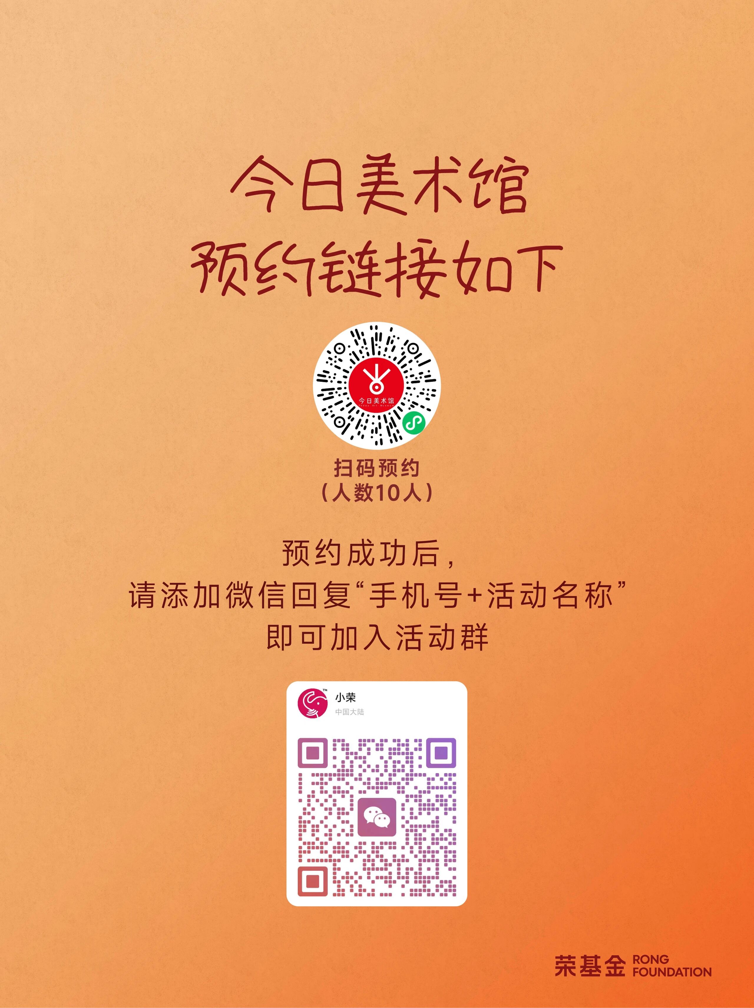 03 预约成功后,请添加上方图片下方微信群,微信回复“姓名+活动名称”即可加入活动群。