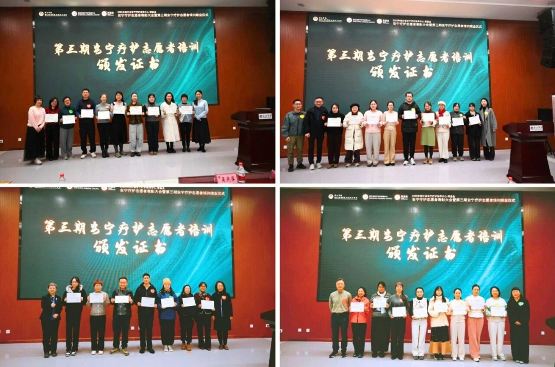 2026年1月18日下午,由浙江省安宁疗护指导中心与与北京荣德利生慈善基金会(简称:荣基金)联合主办的“2025年安宁疗护志愿者年度总结暨第三期志愿者结业仪式”在浙江医院三墩院区温暖落幕。本次活动旨在回顾过去一年安宁志愿者团队的服务足迹,表彰那些默默付出、点亮生命余晖的志愿者,并为第三期学员举行一场庄重而充满温情的结业仪式。