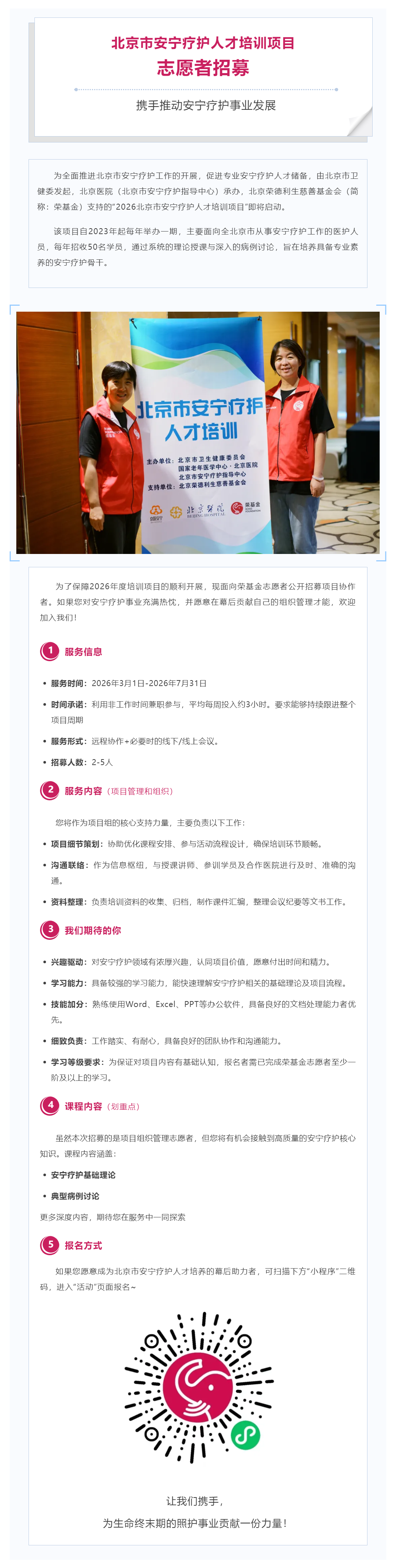 北京市安宁疗护人才培训项目招募志愿者