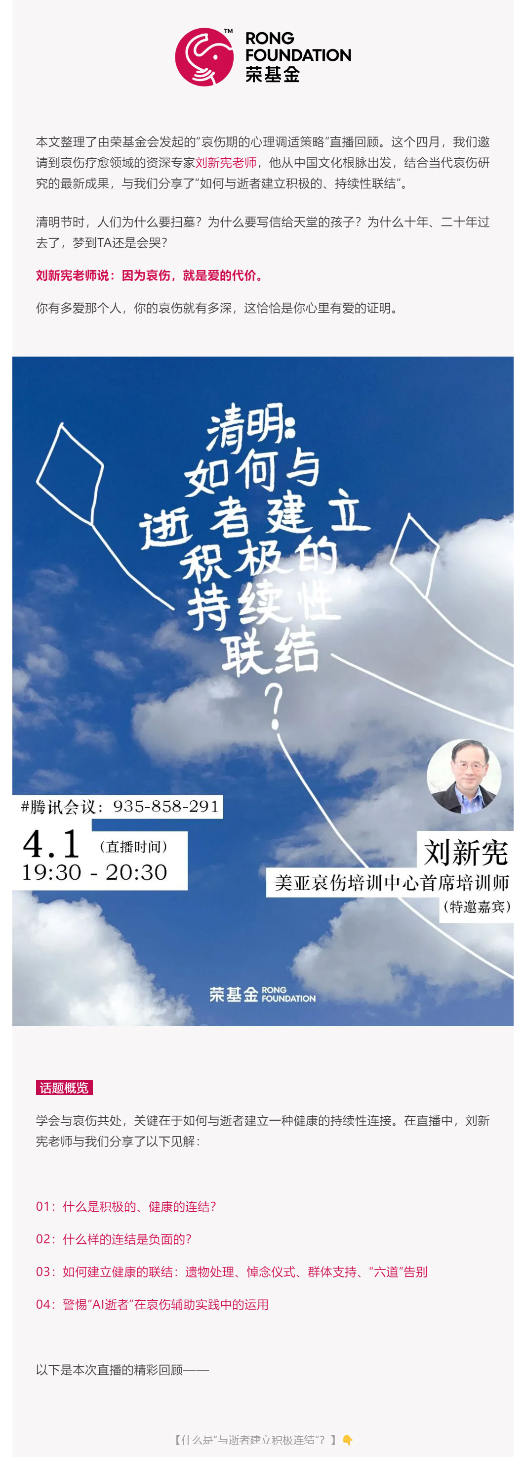 直播回顾 | 如何与逝者建立积极的持续性联结?