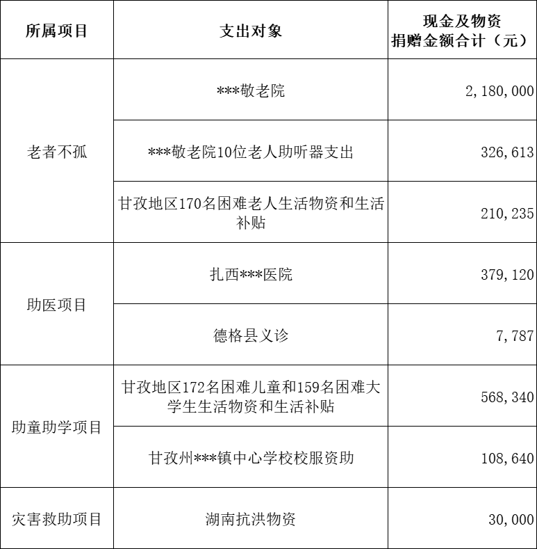 荣基金2024年度款物支出表情况