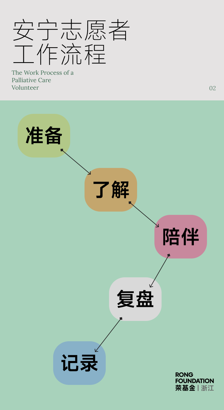 作为安宁疗护的志愿者,为患者和家人提供倾听和陪伴,减轻患者的死亡恐惧和焦虑,化解人生遗憾,探寻生命的终极意义。肯定生命,赞美生命,陪伴生命。志愿者在陪伴患者的同时,自己也获得心灵的成长,所以也感恩患者及家属给我们提供陪伴的机会。