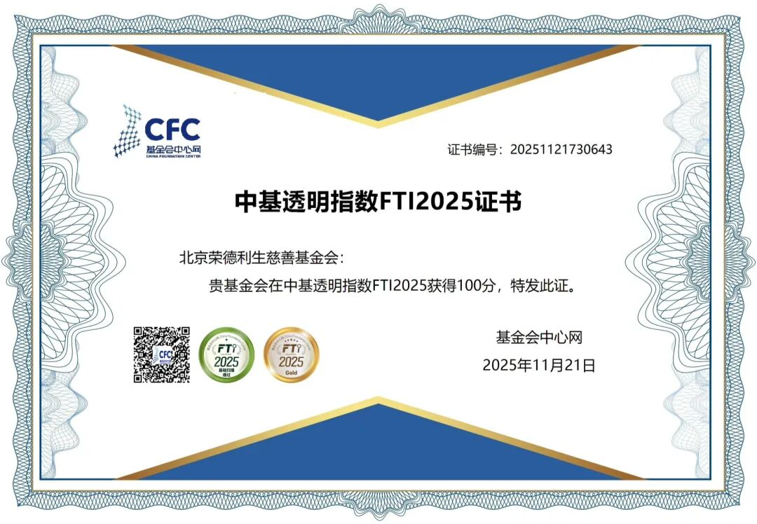 11月21日,中基透明指数FTI2025观测结果正式公布,北京荣德利生慈善基金会(简称:荣基金)在本年度评估中获得满分100分。