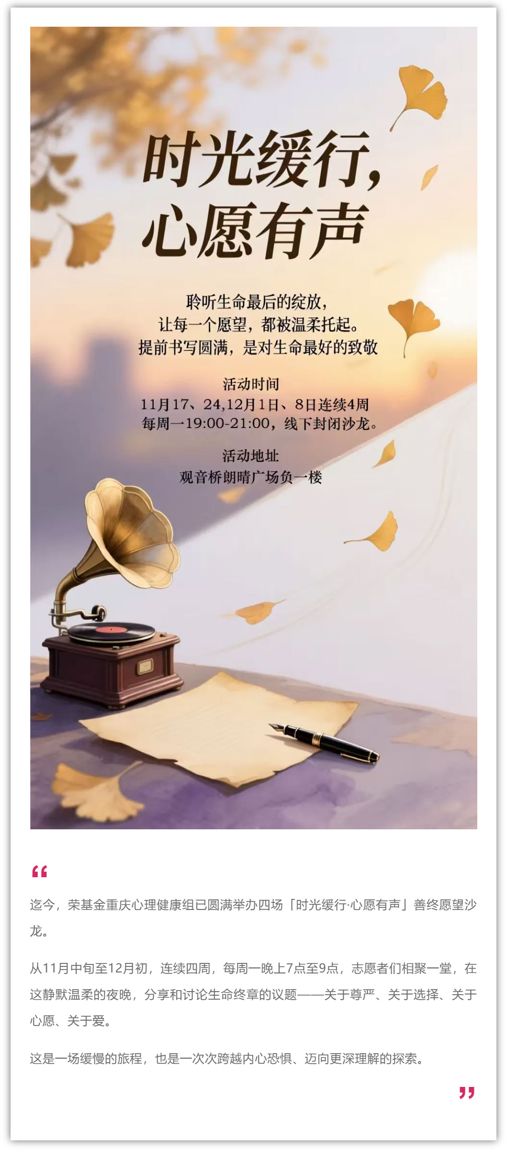 荣基金重庆团队四期“善终愿望沙龙”圆满完成