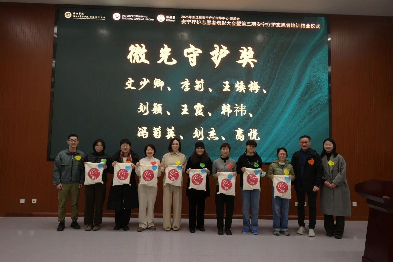 2026年1月18日下午,由浙江省安宁疗护指导中心与与北京荣德利生慈善基金会(简称:荣基金)联合主办的“2025年安宁疗护志愿者年度总结暨第三期志愿者结业仪式”在浙江医院三墩院区温暖落幕。本次活动旨在回顾过去一年安宁志愿者团队的服务足迹,表彰那些默默付出、点亮生命余晖的志愿者,并为第三期学员举行一场庄重而充满温情的结业仪式。