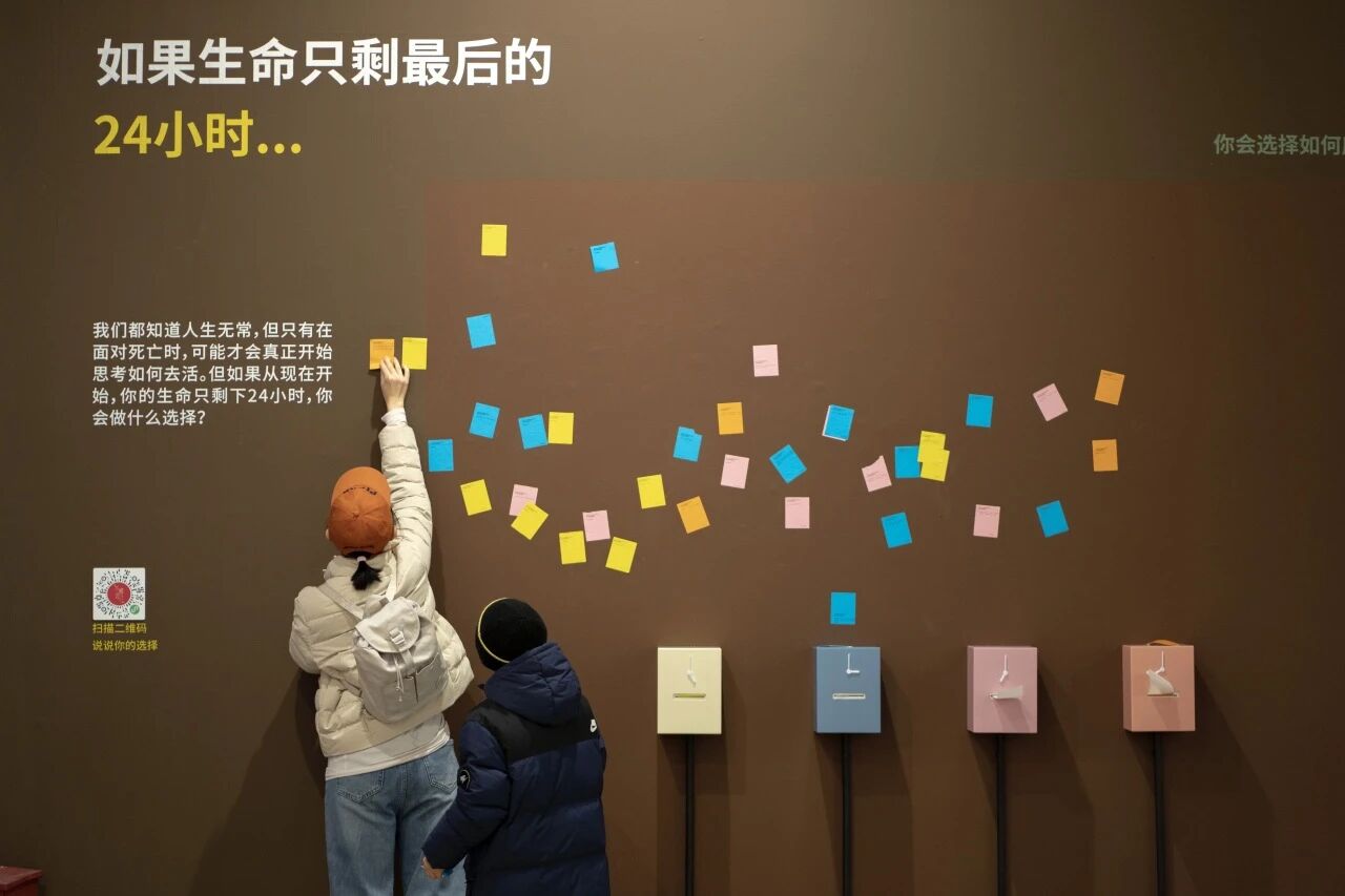 展览并不止步于情感的触动,而是将共鸣转化为行动的契机。一张“四道人生”卡片,一份《安宁照护意向书》,一次走进电话亭的独白……每一次互动都是一次温柔而认真的自我梳理。